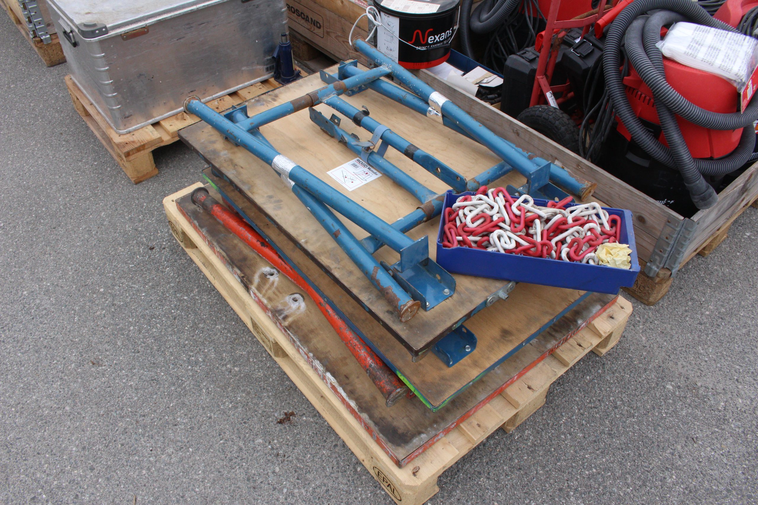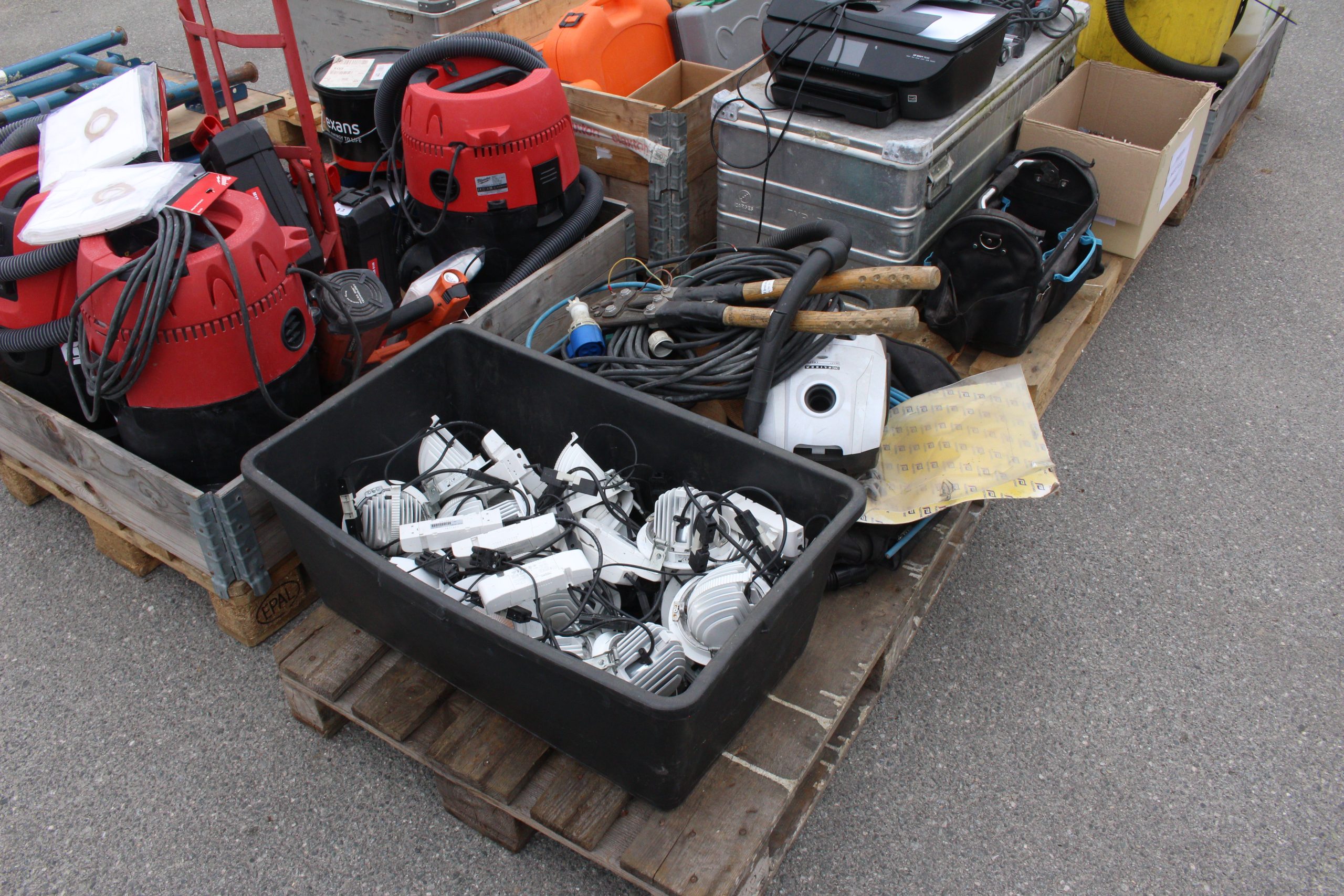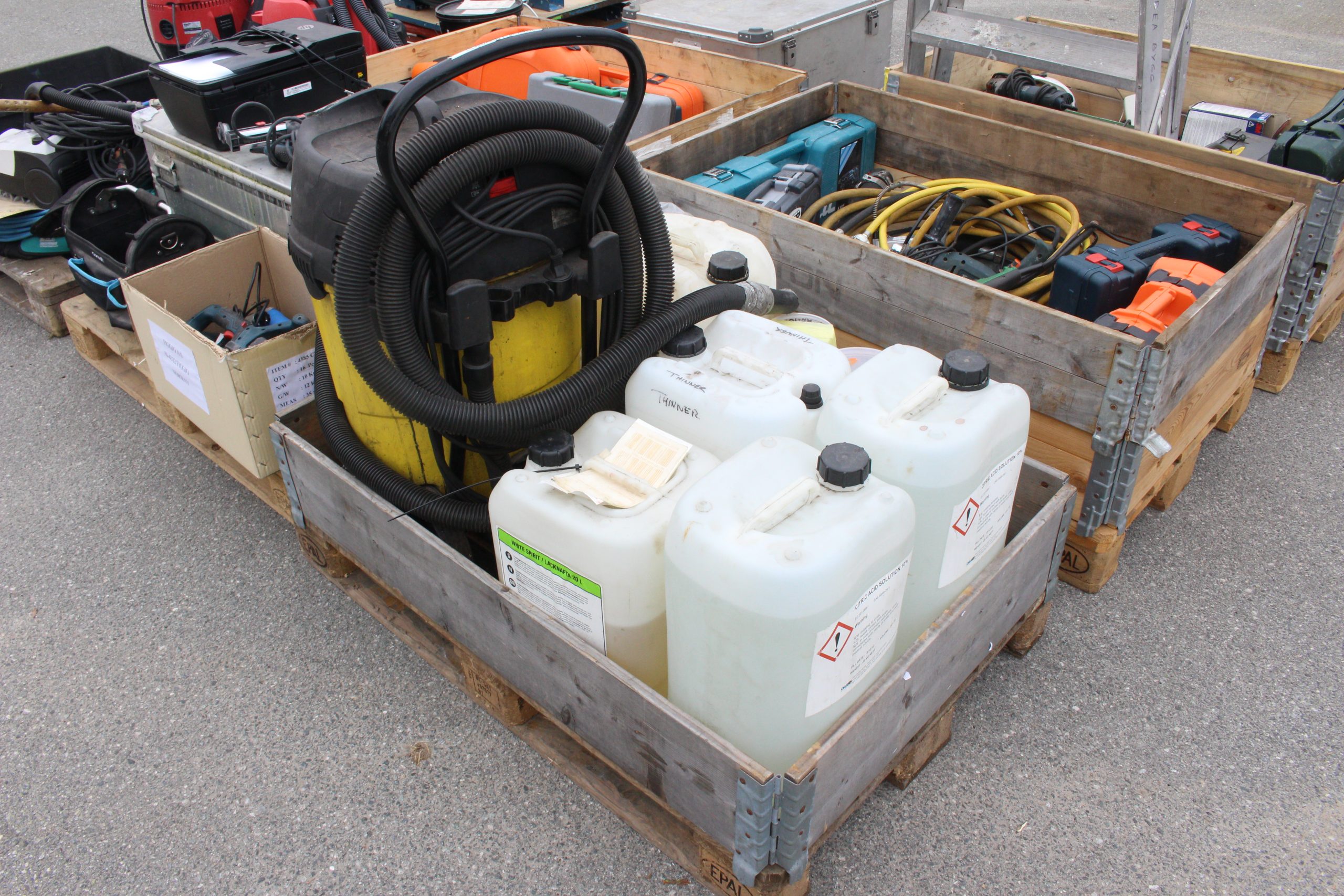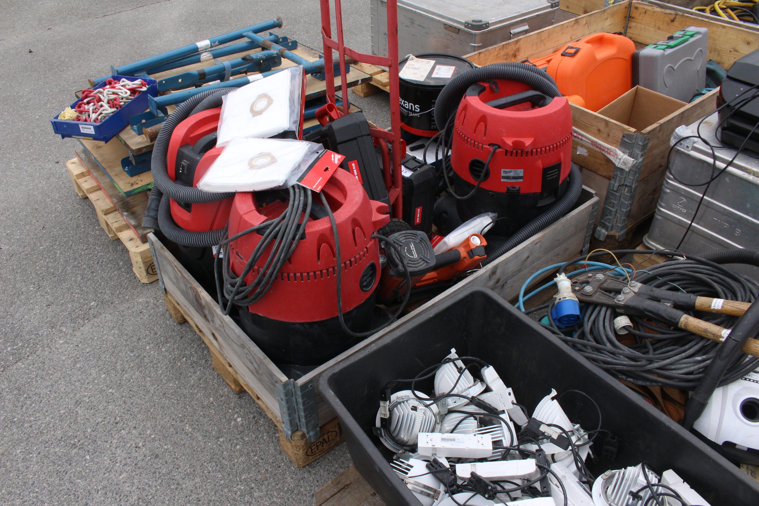 9-paller diverse maskiner, verktøy, kjemi, belysning mfl.