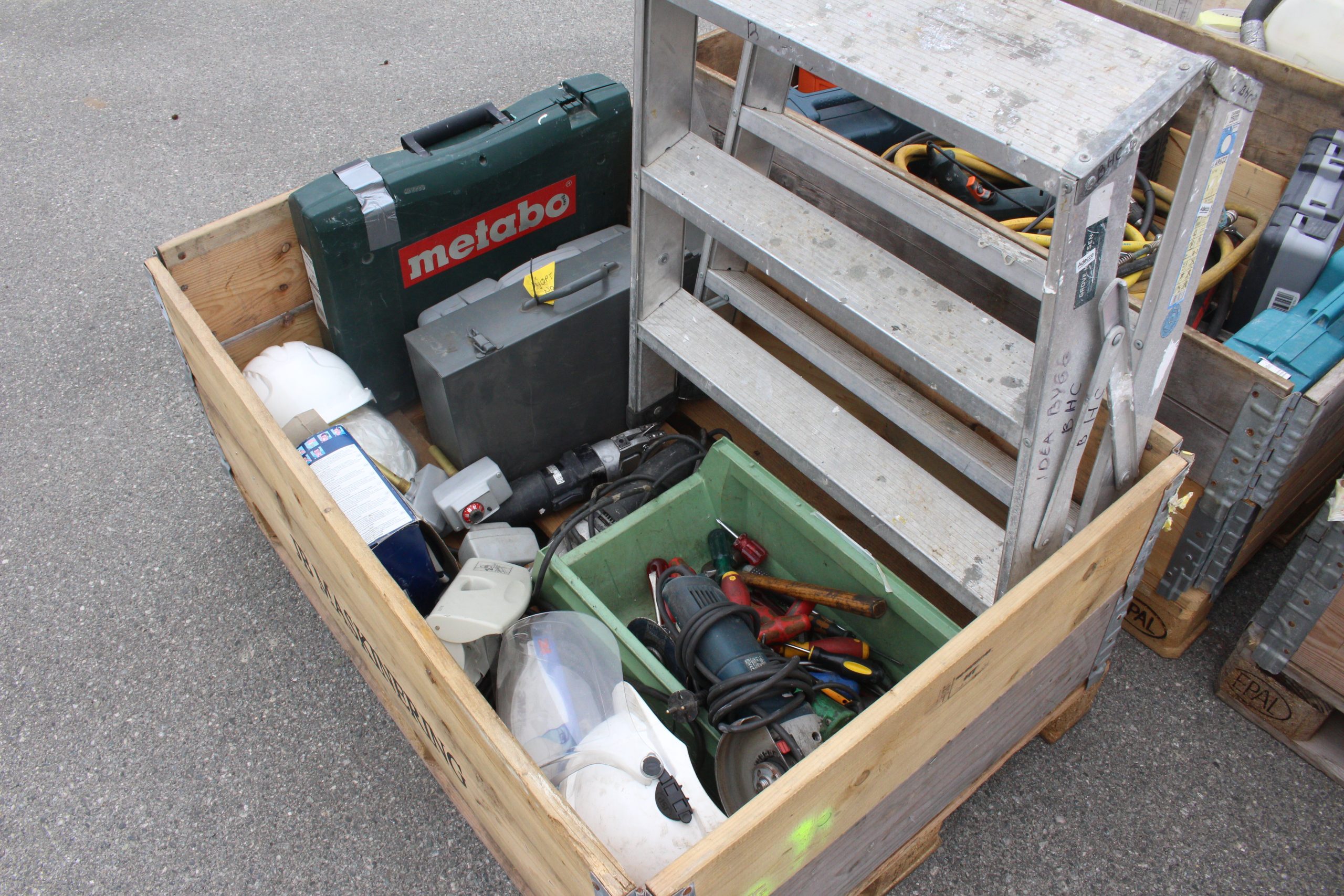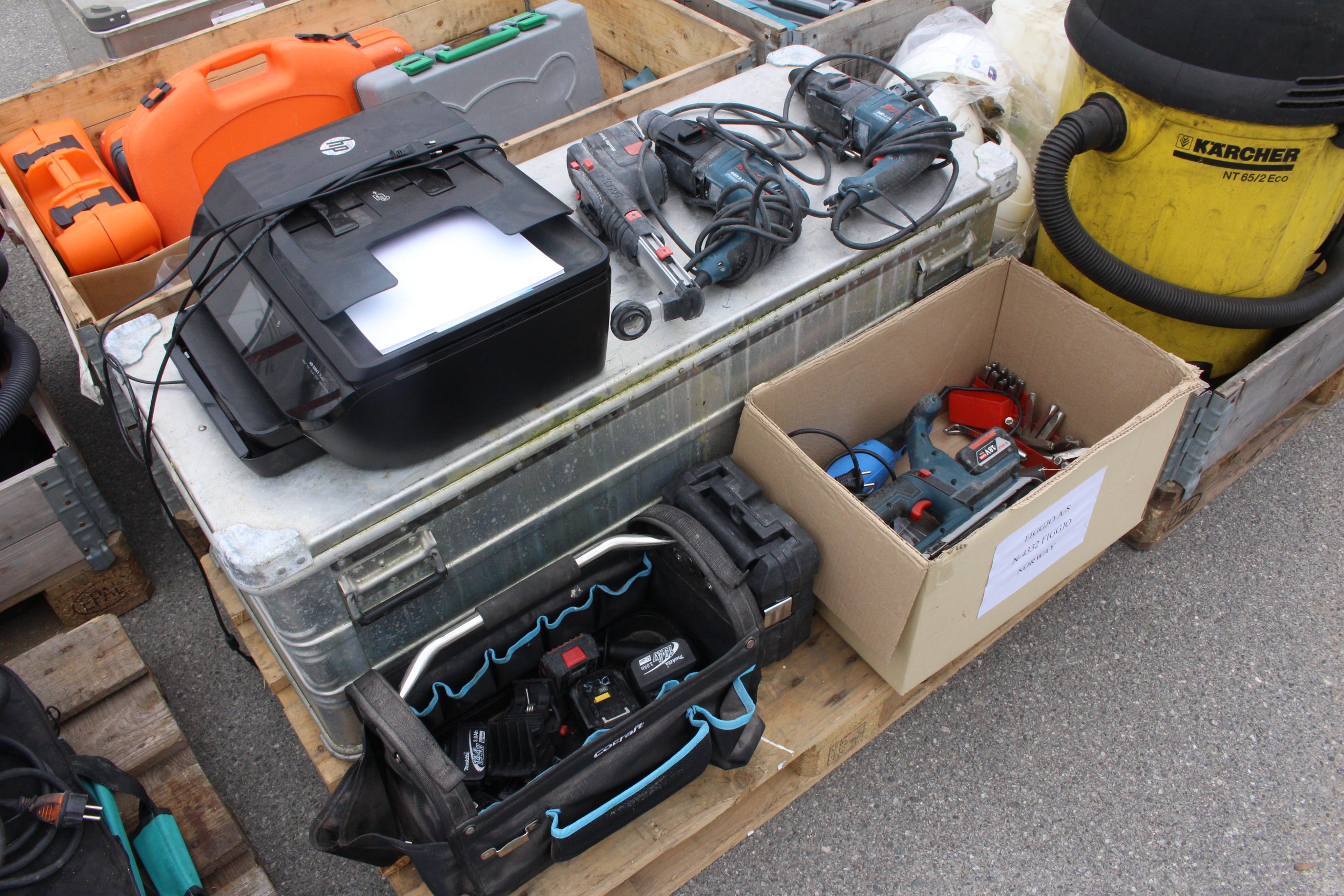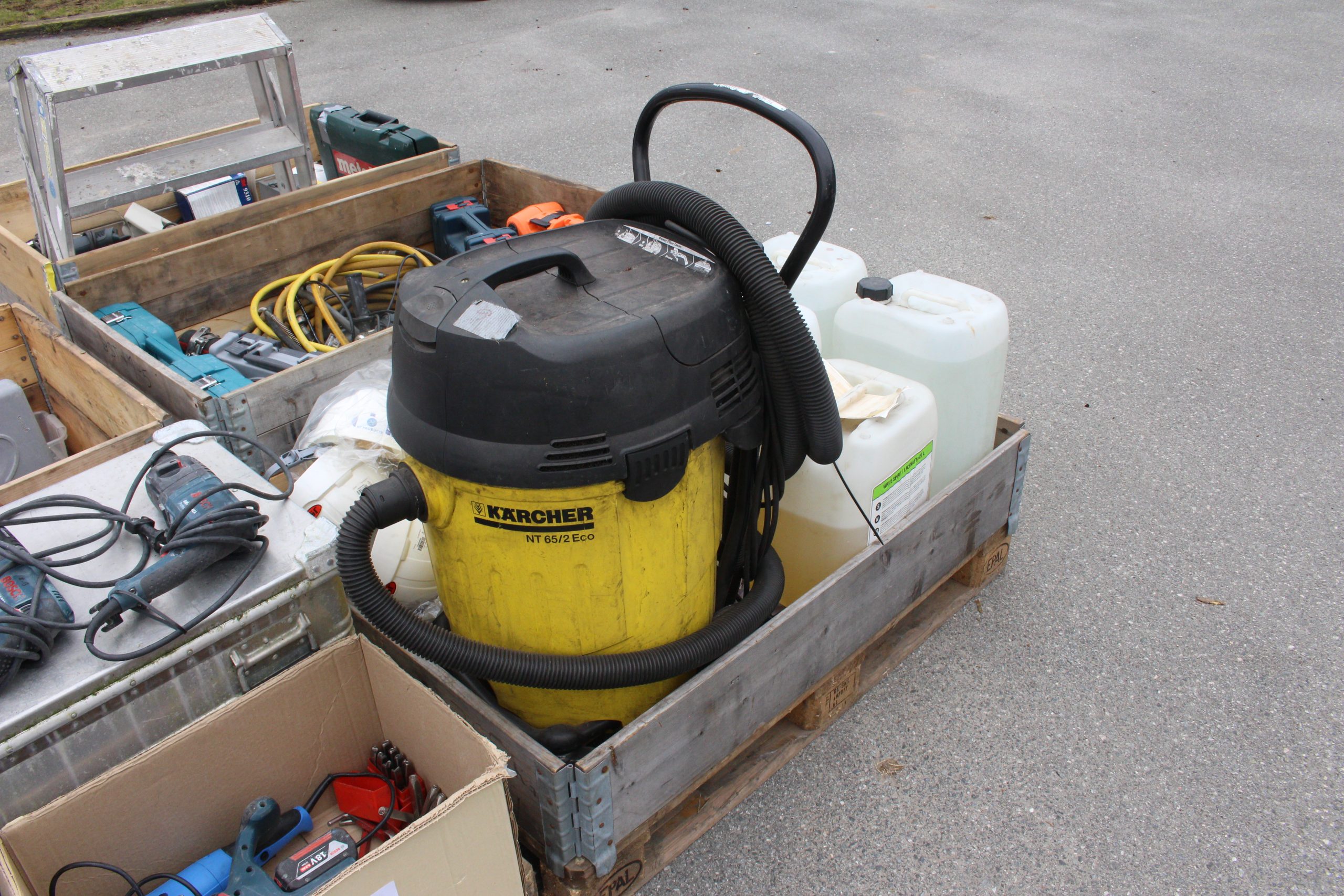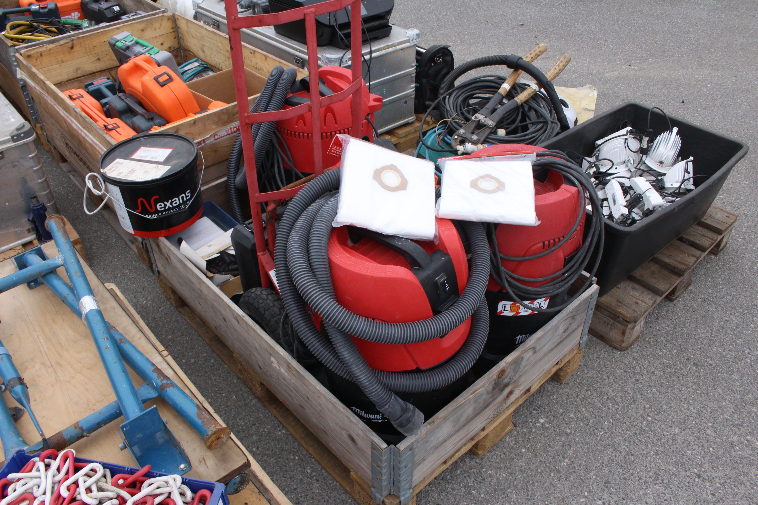 9-paller diverse maskiner, verktøy, kjemi, belysning mfl.