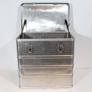 Espenes 782x582x600mm alukasse -Bærer ikke særlig preg av bruk -Espenes artikkelnr. 153240 -Utvendige mål: 782x582x600mm -Innvendige mål: 750x550x580mm -Kapasitet: 240Ltr,